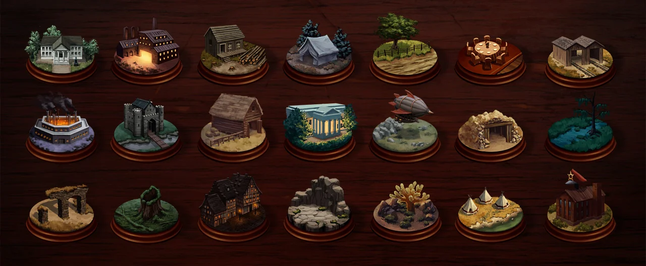 Each location you visit in Ironclad Tactics needed a unique and defining set of assets. Here is a collection of location backgrounds, level icons, and campaign maps that were created for the three campaigns.